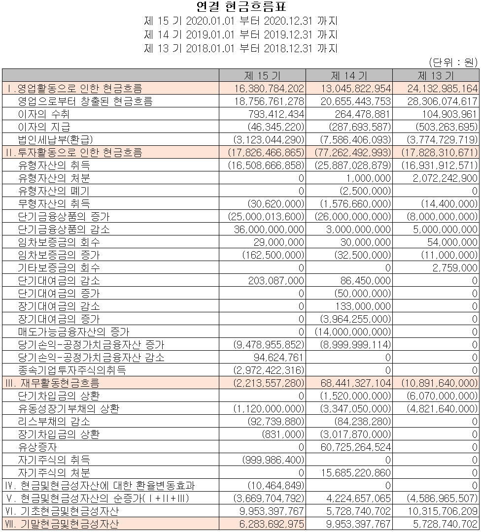당사는 영업활동을 통한 현금을 꾸준히 창출하고 있으며, 신규 사업 등을 위한 투자활동도 꾸준히 이루어지고 있습니다. 2020년 당기 말 기준 현금성 자산은 63억 원입니다.