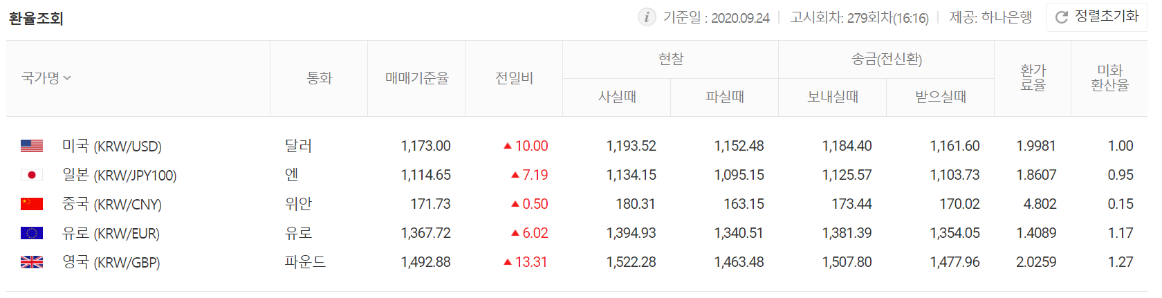 오늘 환율은 미국의 정치적 이슈와 유럽발 코로나 재확산 우려 때문에 원달러환율 및 유럽 환율이 상승하는 모습을 보였습니다. 원달러 환율은 전일 대비 10원 오른 1173원을 기록하면서 한동안 1180원대 박스권에 있던 환율을 위협하고 있습니다.