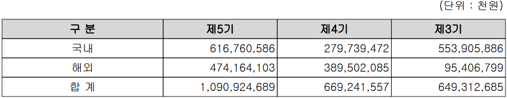 2020년 당기 매출 중 56.5%가 내수, 43.5%가 수출의 비중을 보이고 있습니다. 전반적으로 전기 대비 국내 주요 고객사의 설비 투자로 인해 내수 매출이 크게 증가하였습니다.