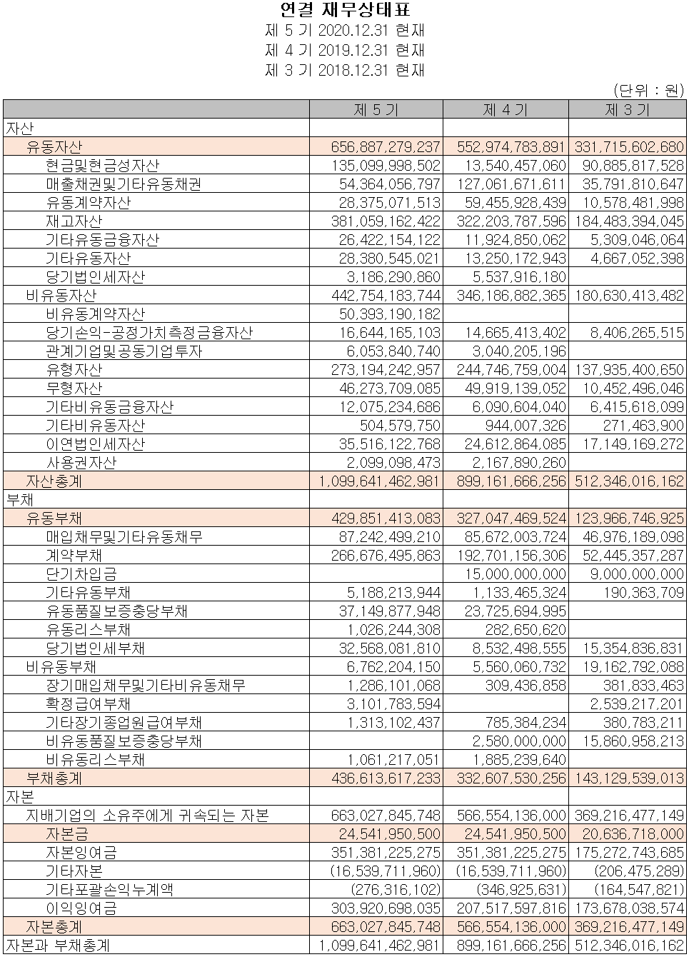 2020년 당기 말 현재 당사의 자산총계는 전년 대비 22.3% 증가한 1조 996억 원으로 현금성 자산의 증가와 본사 및 관계 기업의 설비 등 신규 투자로 인한 자산 증가가 있었습니다. 부채는 전년 대비 31.3% 증가하면서 4,366억 원을 기록했습니다.
