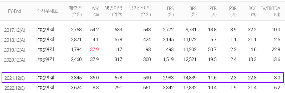 당사의 2021년 컨센서스는 매출액 3,345억 원으로 전년 대비 36% 증가하고, 영업이익은 678억 원으로 113.9% 증가, 당기순이익은 590억 원을 기록하면서 96.7% 증가할 것으로 추정했습니다. 전방 산업의 투자 확대와 특히 NAND의 고단화에 따라 당사의 실적도 증가할 것으로 전망됩니다.
