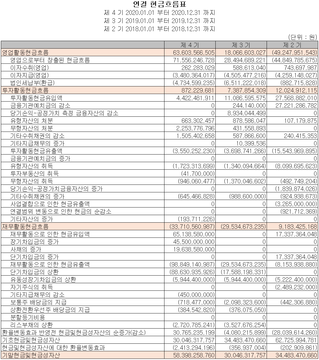 당사는 영업활동으로 꾸준히 현금을 창출하고 있으며, 지난해 실적 개선 등을 통해 636억 원의 현금이 유입되었고, 배당금 지급, 부채의 상환 등을 ㅎ고 있고, 연구개발비의 상각 등이 있었습니다.