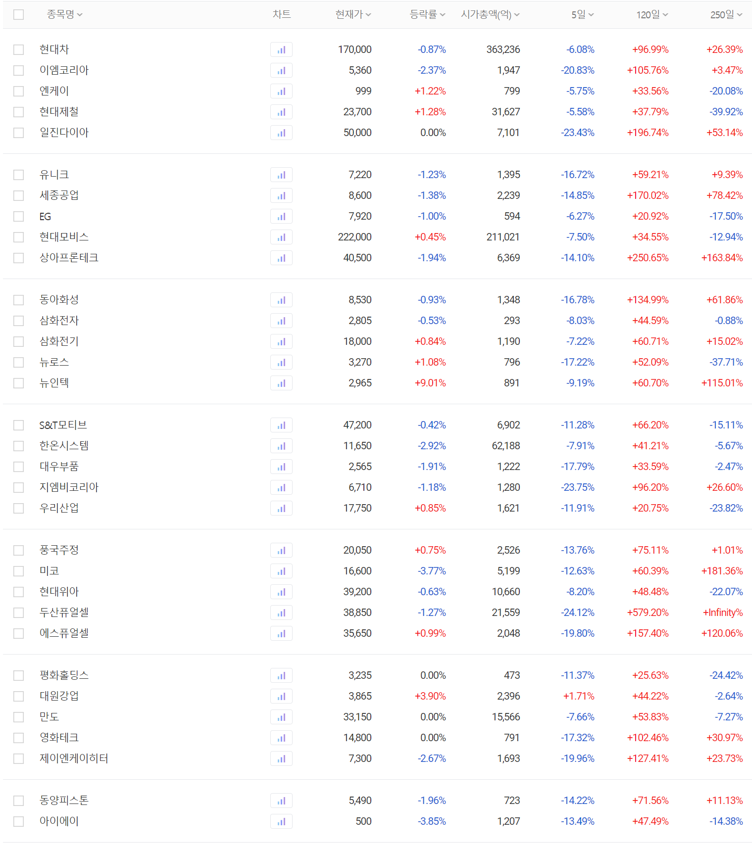 코스피 포함 그동안의 성장주로 일컬어진 전기차 배터리, 수소차 및 풍력 관련 주들 대부분이 하락했습니다.