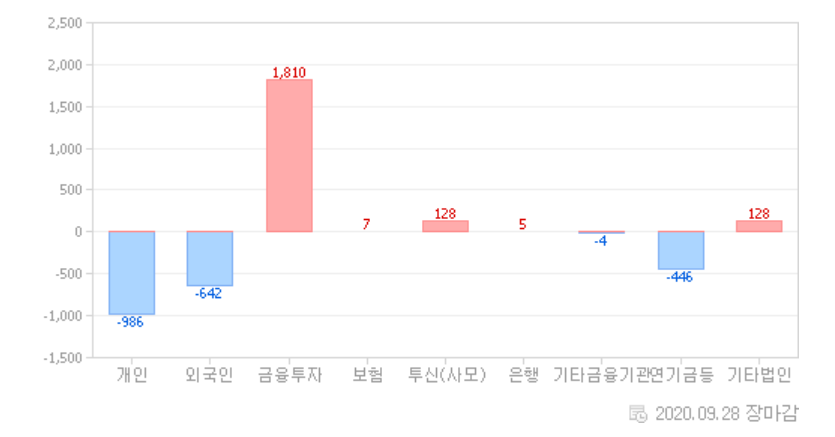 그동안의 낙폭이 너무 과했을까요? 추석 연휴 2일 전인 오늘은 몇 가지 우려와 달리 코스피(1.29%), 코스닥(3.42%) 모두 상승하면서 지난 금요일부터 반등을 보여주는 하루였습니다. 코스피는 20포인트 정도 갭상승을 두고 출발했으며, 코스닥 시장도 상승 출발을 하면서 오늘 하루 시간이 흐르면서 점점 상승픅을 키워가는 모습이었습니다. 오늘은 기관이 오랜만에 순매수로 돌아서면서 시장의 상승을 주도했습니다. 여러 가지 굵직한 대외 이슈 와중에 오늘 국내 코로나19 확진자수는 50명으로 사흘째 두 자릿수를 유지하고 있습니다.