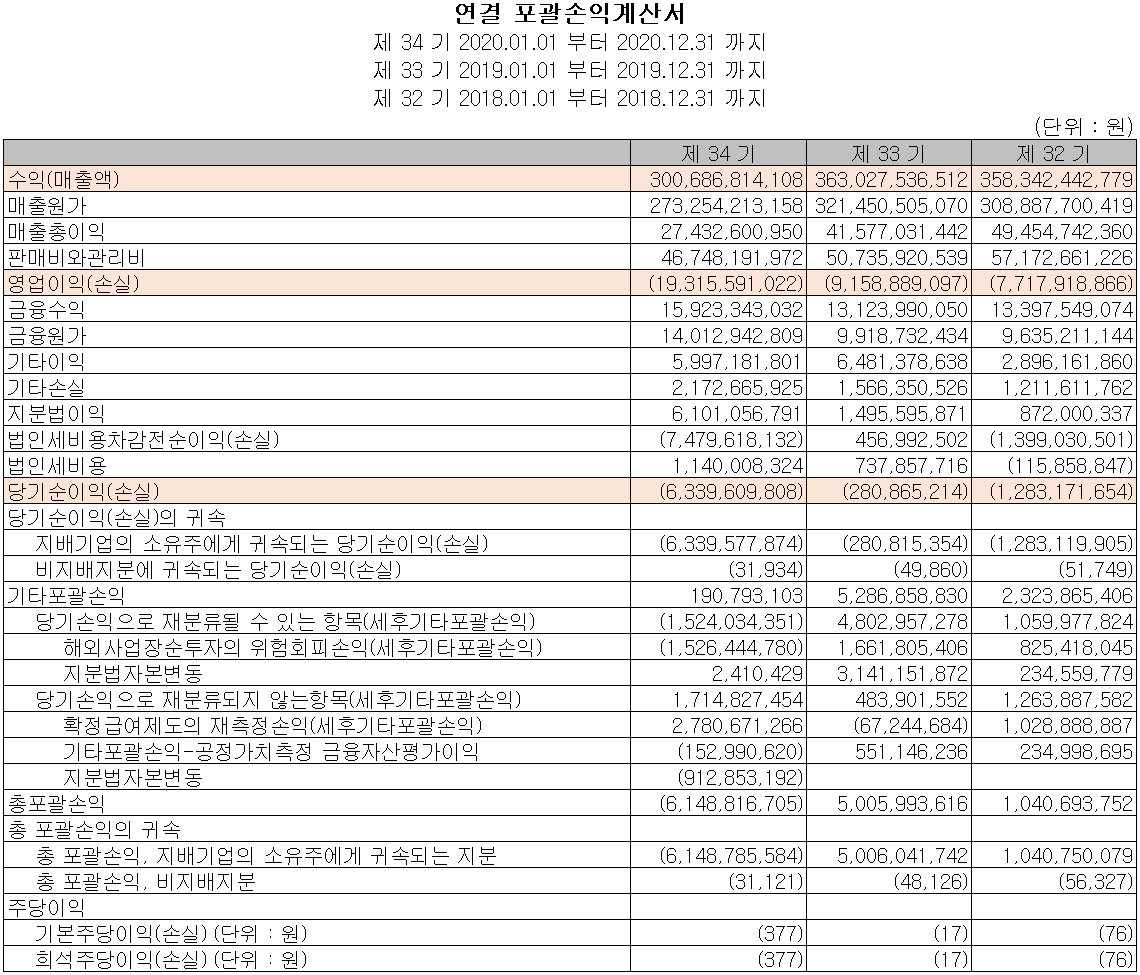 당사의 2020년 실적은 매출액 3,007억 원으로 전년 대비 17.2% 감소했고, 영업손실 193억 원, 당기순손실 63억 원으로 적자 지속입니다. 전반적으로 카메라모듈 사업 철수로 인한 실적이 악화되었고, 매출 부진으로 이익도 악화되었습니다. 지난 2019년부터 시작한 카메라 모듈 사업에 따른 수익성 악화로 3년 연속 힘든 시기를 보냈으나, 2021년 1월부로 카메라모듈 설비까지 매각을 하는 등 완료 수순을 밟고 카메라용 부품에 집중한 결과 지난해 3분기 당기 순이익을 내면서 서서히 재도약을 준비하고 있습니다.