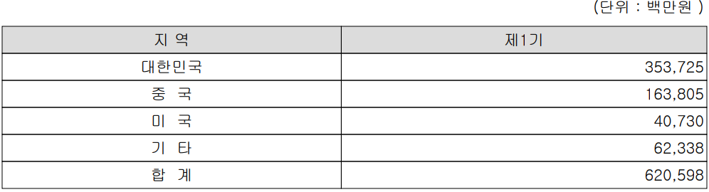 지역별 매출 실적에서는 국내 매출 57%, 중국 26.4%, 미국 6.6%, 기타 지역 10%의 비중을 보이고 있습니다.
