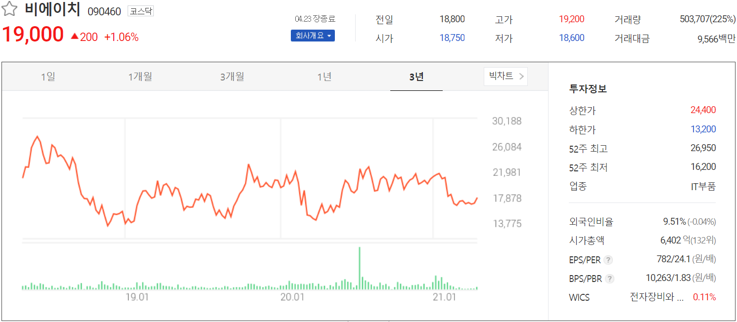 기업 분석 및 주가 전망 - 비에이치 (090460)