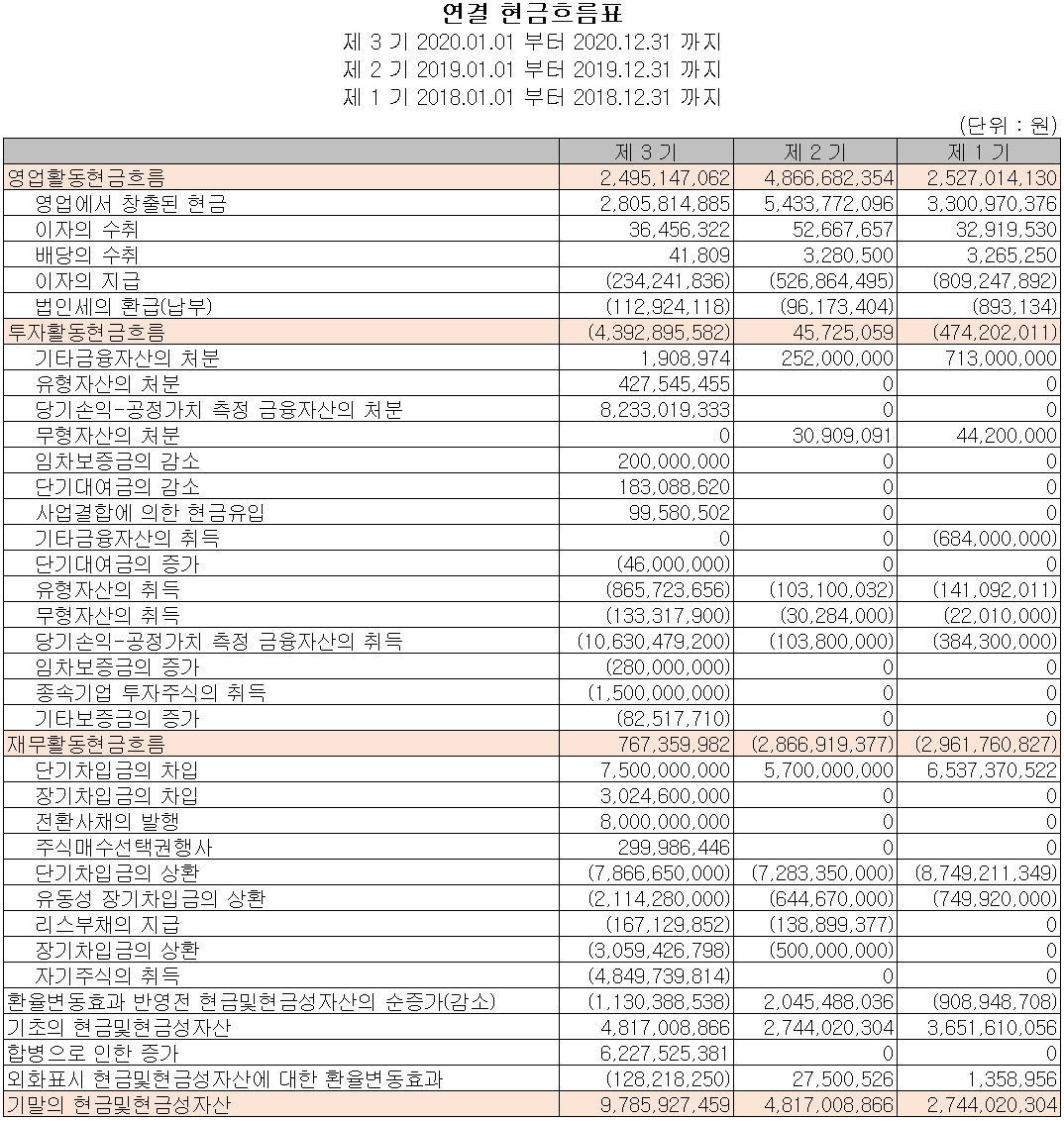 당사는 영업활동으로 꾸준히 현금을 창출하고 있으며, 차입금을 조달하여 부채를 상환하고 설비 및 연구 개발에 투자하고 있습니다. 2020년 당기 말 기준 현금 및 현금성 자산은 98억 원입니다.