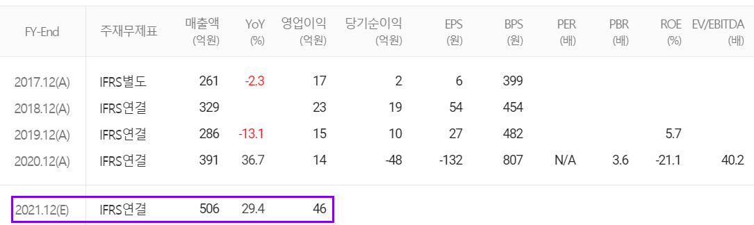 당사의 2021년 예상실적은 매출액 506억 원으로 전년 대비 29.4% 증가하고, 영업이익은 46억 원으로 228.6% 증가할 것으로 추정했습니다. 주력 사업인 초정밀 절단 장비의 수요가 증가 추세에 있고, 자회사를 통한 자동화 부품의 유통 사업 전망도 밝을 것으로 내다봤습니다.