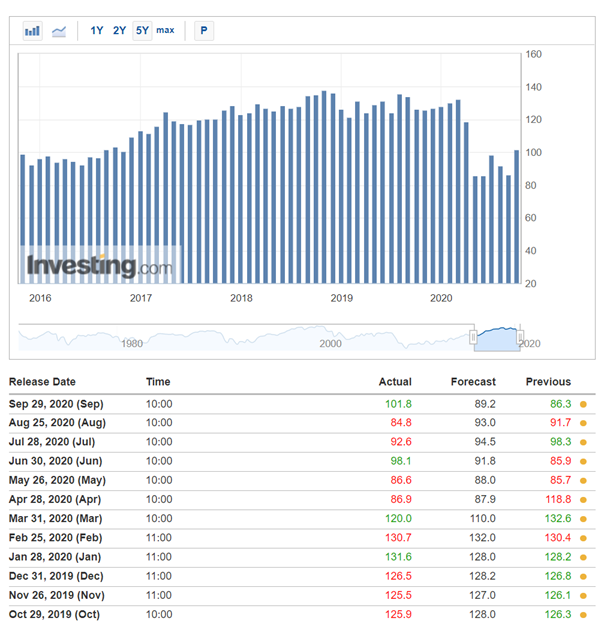 어제 밤 유럽 및 뉴욕 증시는 대부분 약보합으로 마감하면서 다가올 미국 대선 TV토론과 추가 경기 부양 안을 기다리는 듯한 모습이었습니다. 어제 미국 소비 신뢰 지수가 마켓 예상치보다 훨씬 높은 수피인 101.8을 기록했지만, 미국 내 정치적 불확실성을 이기지 못했습니다.