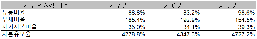 2020년 주요 재무 안정성 비율에서는 유동비율 88.8%, 부채비율 185.4%, 자기자본비율 35%, 자본유보율 4,278.8%를 기록하였습니다. 자동차 램프 사업을 영위하는 서연이화오토모티브의 매각 등 자동차 내 외장품 사업에 집중하기로 함과 동시에 코로나19로 감소된 실적 개선에 따라 전반적으로 부채비율 감소가 진행될 것으로 판단됩니다.