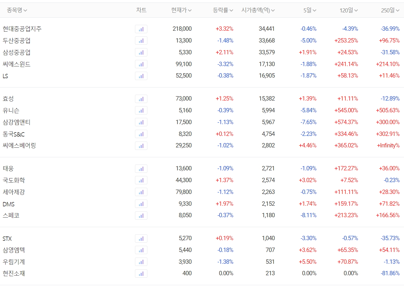 재생에너지(해상 풍력) 관련주 대장주 주간 시황