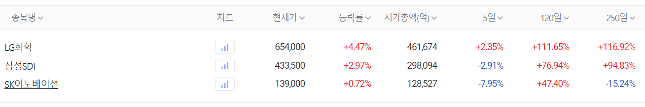 전기차 배터리(2차전지) 3사 주간 시황