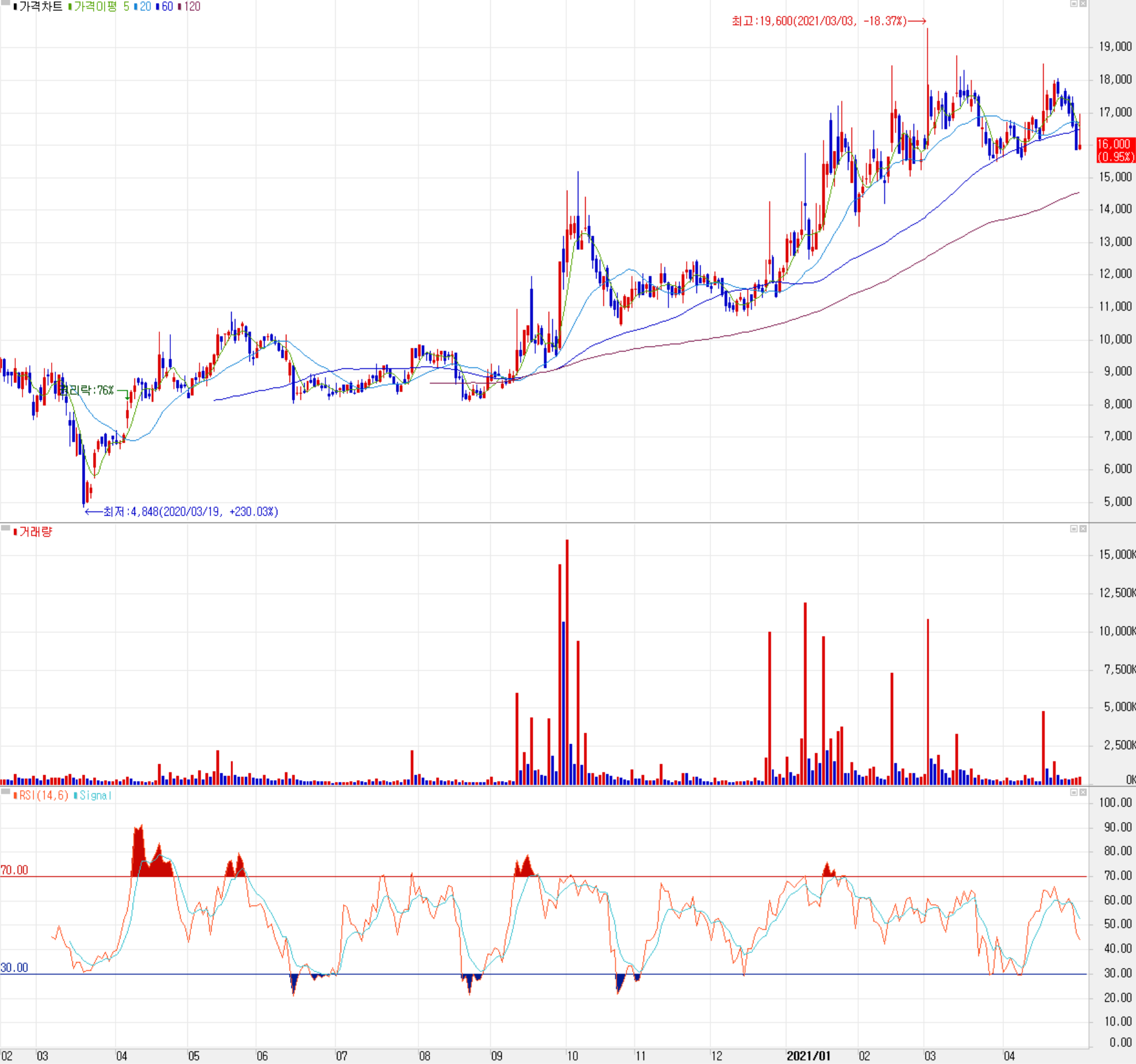 코로나19 팬데믹으로 급락한 지난해 3월 이후 당사의 주가는 빠르게 회복하면서 최근까지 상승추세를 이어오고 있습니다. 실적은 소폭 감소했으나 안정적인 재무 구조와 핵심 기술 기반의 안정적인 매출 구조를 보유하고 있는 점과 반도체 슈퍼사이클에 따른 효과가 접목된 추이를 보여주고 있습니다. 주식 수가 많지 않아 손바뀜이 잦은 상황에서 최근 수급에서는 기관이 매수 우위를 보이고 있습니다. 예상 실적과 차트 관점에서 개인적인 목표주가는 18,000원으로 설정하였고, 하락 시에는 14,500원을 지지로 보고 있습니다.