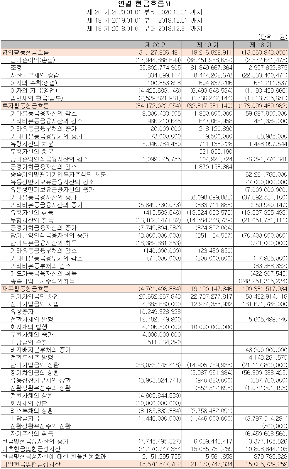당사는 지난 3년간 지속된 적자로 인해 2020년 당기 중에는 유상증자 및 사채의 발행 등을 통하여 자금을 조달하기 위한 노력을 했습니다. 이는 코로나19로 불확실성이 커진 만큼 유동성을 강화하여 IVI 및 ADAS 등의 제품 연구개발에 투자하여 선제적으로 대응하고 인도 등 신흥국에 진출하기 위한 조치였습니다.