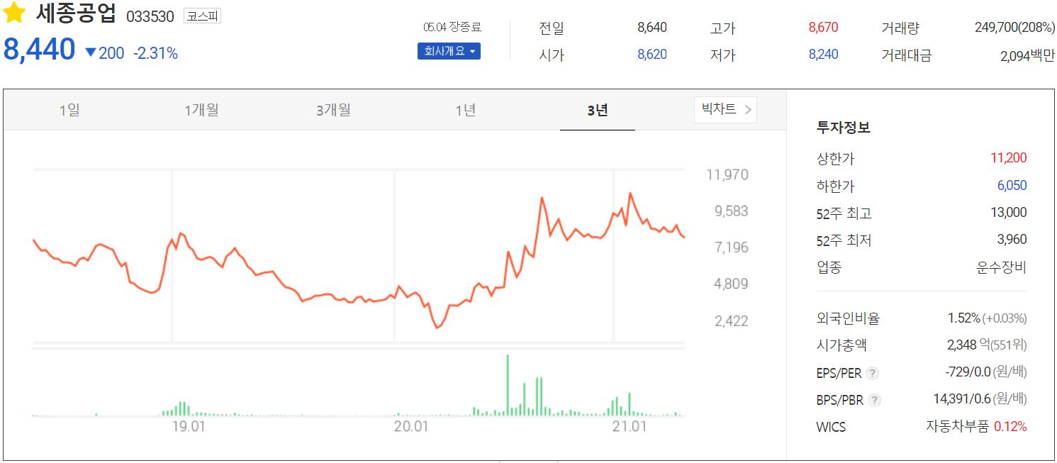 기업 분석 및 주가 전망 - 세종공업 (033530)