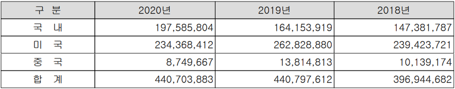 코로나19 팬데믹으로 인한 봉쇄조치 등으로 미국과 중국의 매출이 저조했으나, 내수는 전년 대비 20% 증가하였습니다. 전반적으로 내수 44.8%, 수출 55.2%의 비중을 나타냈습니다.