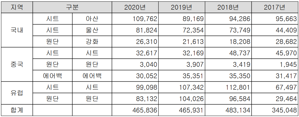 당사의 주요 제품은 자동차용 시트 및 원단 그리고 에어백으로 구성되어 있습니다. 지난해 자동차용 시트의 매출은 전체 매출액의 69.4%, 원단은 24.1%, 에어백은 6.5%의 매출 비중을 나타냈습니다. 매출 실적을 지역별로 구분해 보면 내수 47%, 중국 14%, 유럽 39%의 비중을 기록했습니다.