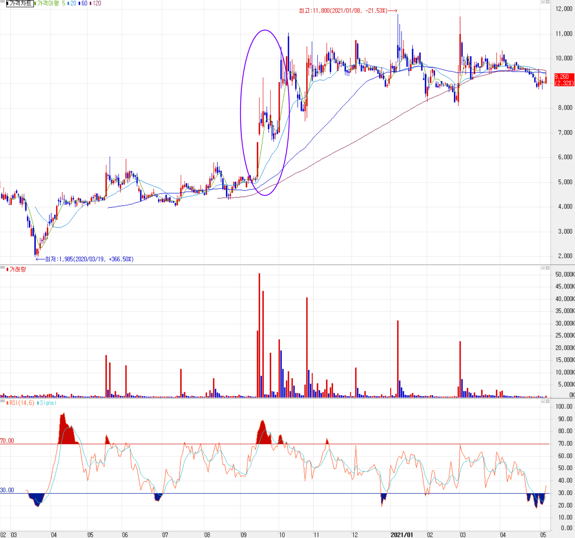 지난해 3월 코로나19로 급락 이후 빠르게 회복한 주가는 9월 중순까지 4,000~6,000원 사이 변동성을 보이다가 9월 중순부터 현대차 신형 투산에 당사의 내장재를 공급한다는 소식에 급등하면서 단숨에 10,000원을 넘긴 후 올해 1월 최고가인 11,800원을 기록했습니다. 최근에는 3월 초 현대차의 아이오닉5 판매 호조에 급등했으나 일부 되돌리면서 현재는 9,000원 초반대를 유지하고 있습니다. 수급에서는 기관의 거래가 없는 가운데 외국인이 소폭 매수 우위를 보이며 개인과 공방을 하고 있으나 거래량이 위축된 상황을 보이고 있습니다. 전반적으로 현대 기아차의 수주 물량에 따라 움직이는 종목이기 때문에, 정해진 목표가 보다는 8,500~ 10,500원 사이를 두고 저점 매수 후 현대 기아차의 신차 흐름에 따른 트레이딩 전략을 취하는 게 좋을 것으로 보입니다.