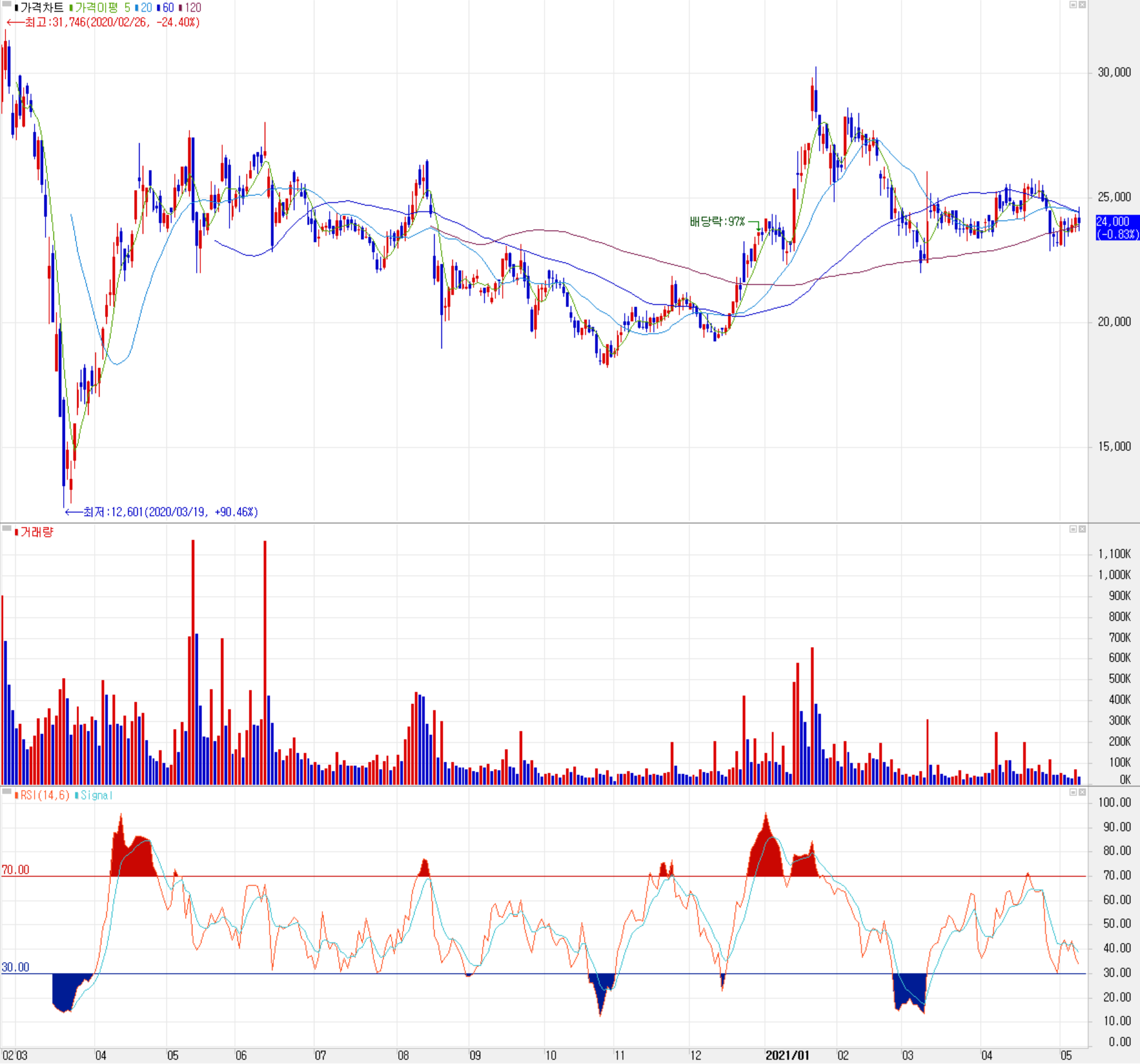 5월 11일 장종료 기준 당사의 주가는 전 거래일보다 0.83% 내린 24,000원에 거래를 마쳤습니다. 외국인 비중은 1.31%이며, 시가 총액 2,260억 원으로 코스닥 시총 상위 462위 종목입니다.