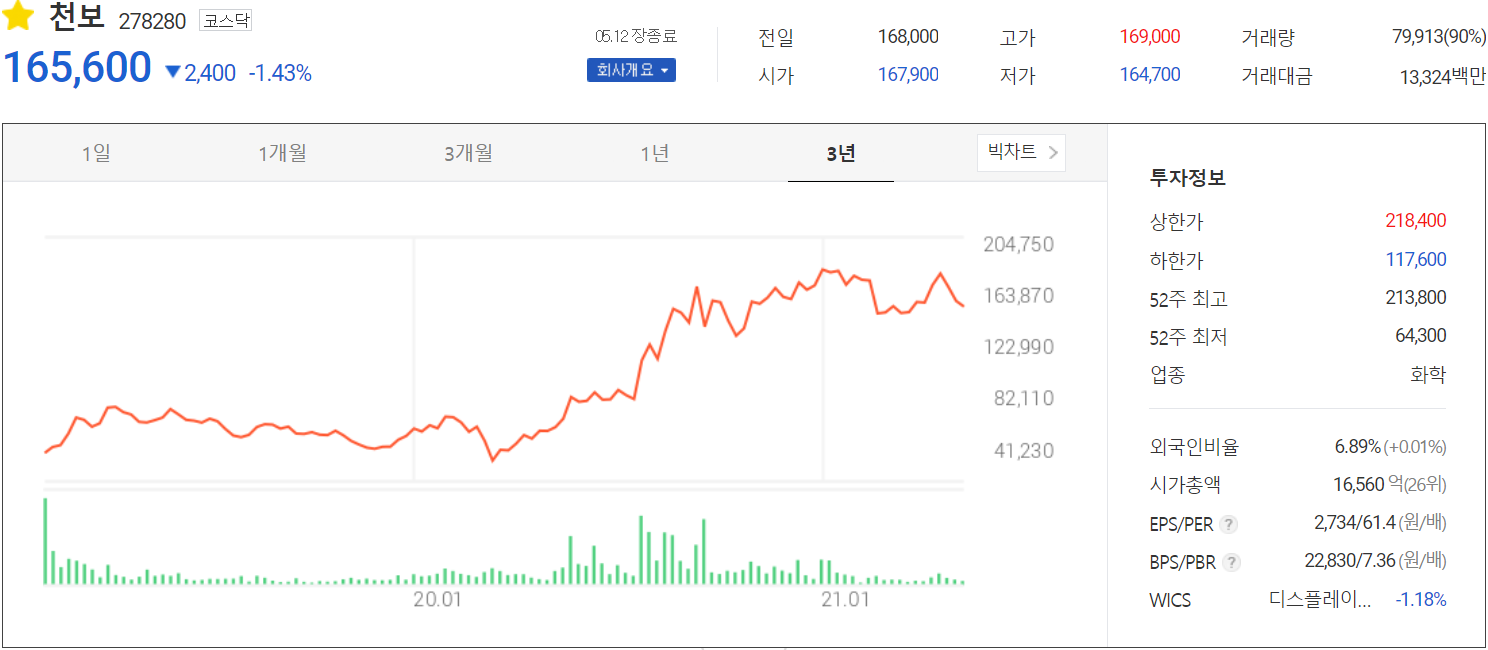 기업 분석 및 주가 전망 - 천보 (278280)