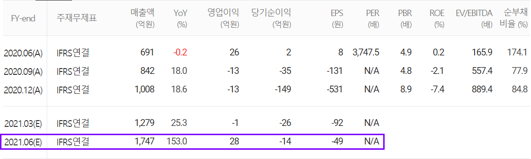 먼저 지난 1분기 컨센서스 대비 영업손익과 당기손익은 하회했습니다. 2분기 예상 실적은 매출액 1,747억 원으로 전년 동기 대비 153% 증가하고, 영업이익 28억 원으로 흑자 전한, 당기순손실 14억 원으로 적자를 추정했습니다. 당사에 의하면 전기차 양극재 공장 신규 설립에 따른 원가 부담이 점차 감소하면서 4개 분기만에 영업 흑자를 기록할 것으로 추정했습니다.