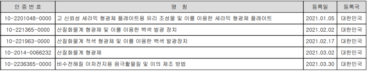 1. 형광체 생산 능력 세계 2위로 꾸준한 매출 견인
