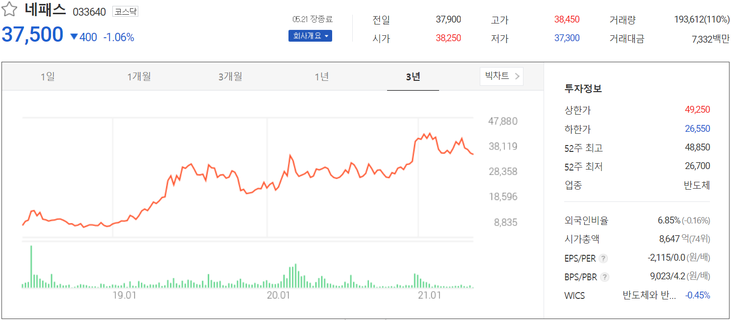 네패스 주가 정보(2021.05.21)