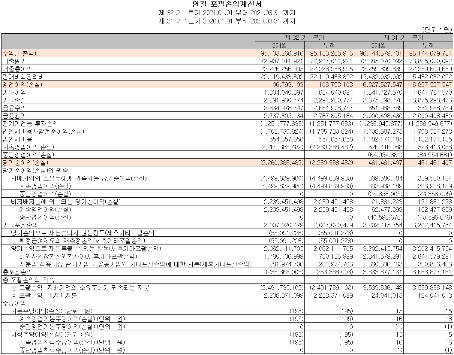 (주)네패스 2021년 1분기 실적 - 손익계산서