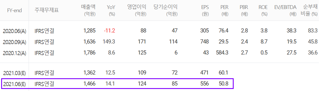 지난 1분기 실적에서 매출액은 컨센서스 대비 일부 매출 지연으로 인해 하회하였으나, 이익은 상회하였습니다. 2분기 컨센서스는 매출액 1,466억 원으로 전년 동기 대비 14.1% 증가하고, 영업이익은 124억 원으로 40.9% 증가, 당기순이익은 85억 원으로 80.8% 증가할 것으로 추정했습니다.