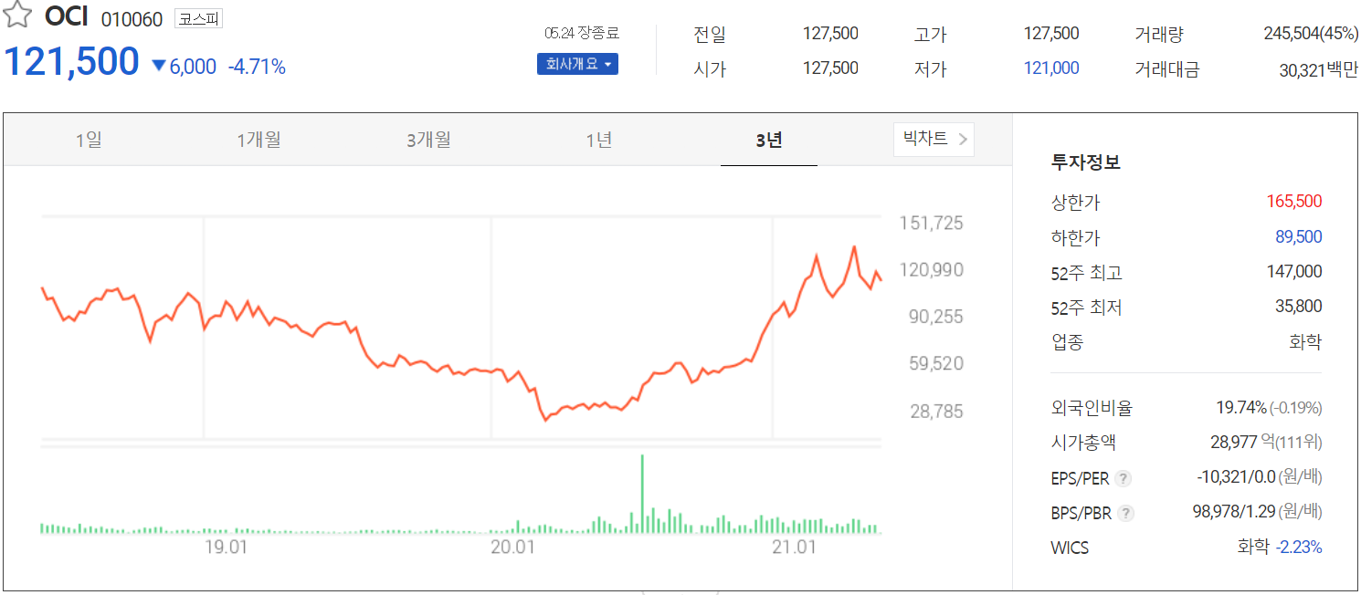 태양광 산업의 핵심 폴리실리콘과 일상생활에 널리 적용되는 과산화수소 그리고 석유화학 산업의 핵심 소재인 카본 케미컬로 새로운 도약을 준비하는 OCI(주)의 2021년 1분기 실적 분석 및 최근 사업 동향을 통한 주가 전망을 공유합니다. 당사의 자세한 사업 내역과 이전 실적은 아래 링크를 참조하시기 바랍니다.