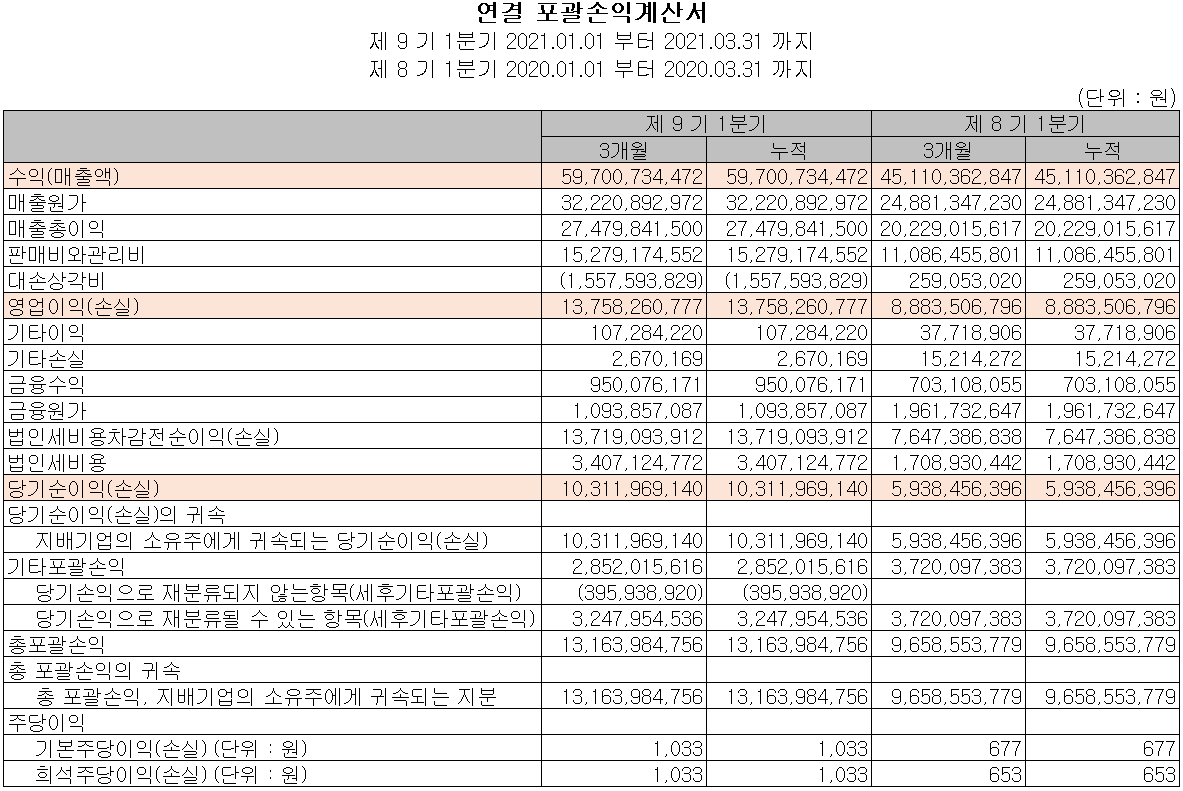 2020년 3분기 실적 및 사업 내역