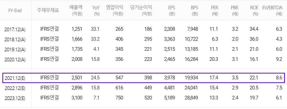 2021년 연간 예상 실적은 매출액 2,501억 원으로 전년 대비 24.5% 증가하고 영업이익은 547억 원으로 53.7% 증가할 것으로 추정했습니다. 지난해 미국 오스틴, 싱가포르, 대만, 중국 등지에 있는 현지법인의 매출이 최초로 1,000억 원을 넘으면서 국내 삼성전자와 SK하이닉스뿐만 아니라 글로벌 반도체 기업들에게도 코팅과 세정부문 경쟁력을 확보하게 되면서 꾸준한 성장이 예견되고 있습니다.