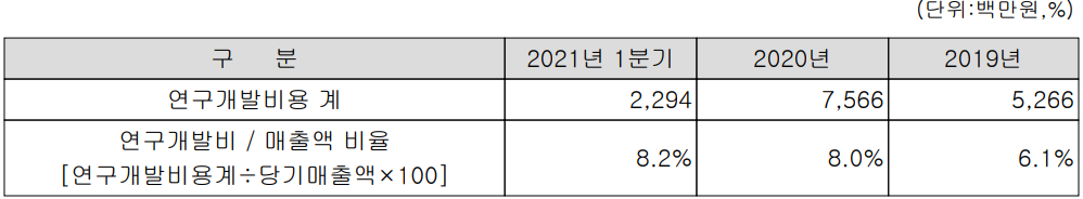 당사는 지난 1분기 전체 매출액의 8.2%에 해당되는 23억 원 규모의 비용을 연구개발에 투입하였습니다. 고객사의 반도체 공정 설비에 대응하기 위한 다양한 세정 및 코팅 기술을 개발하고 있습니다.