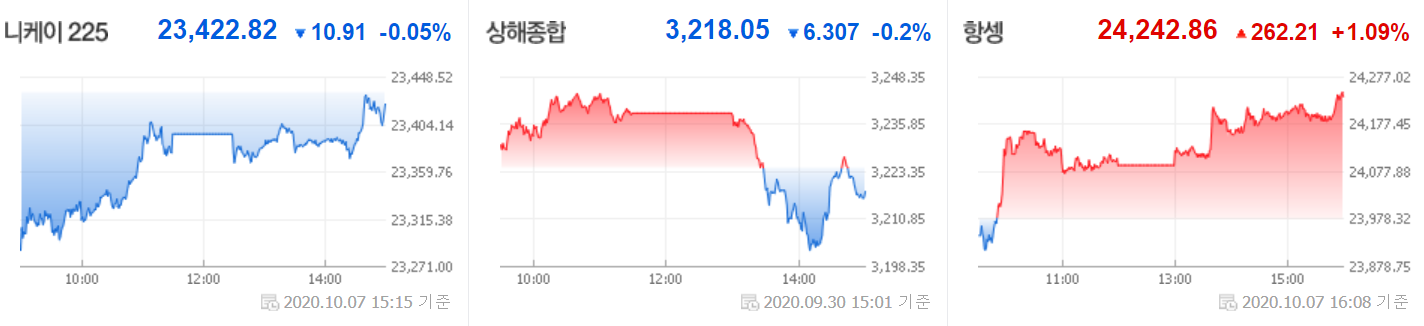 마감 시황(2020.10.07) 코스피, 코스닥,해외 증시