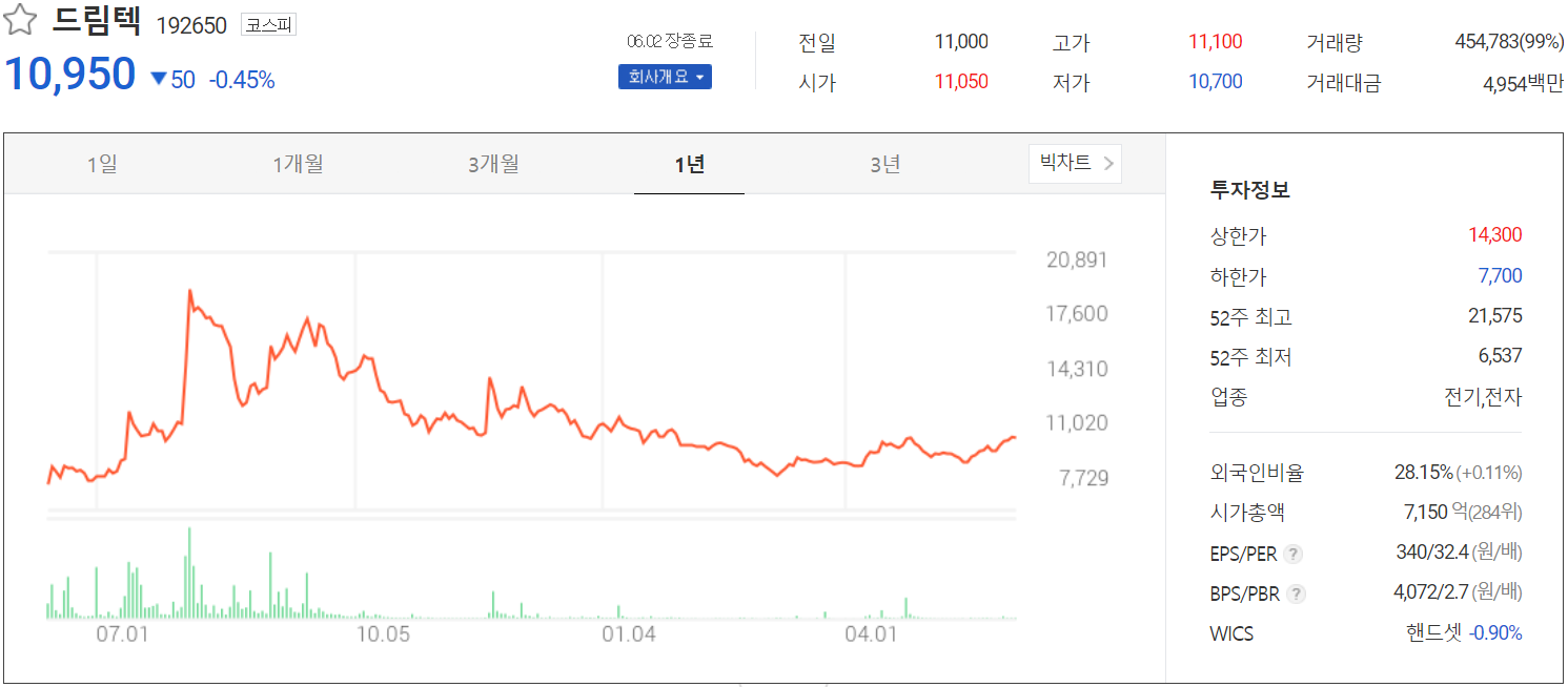 기업 분석 및 주가 전망 - 드림텍 (192650)