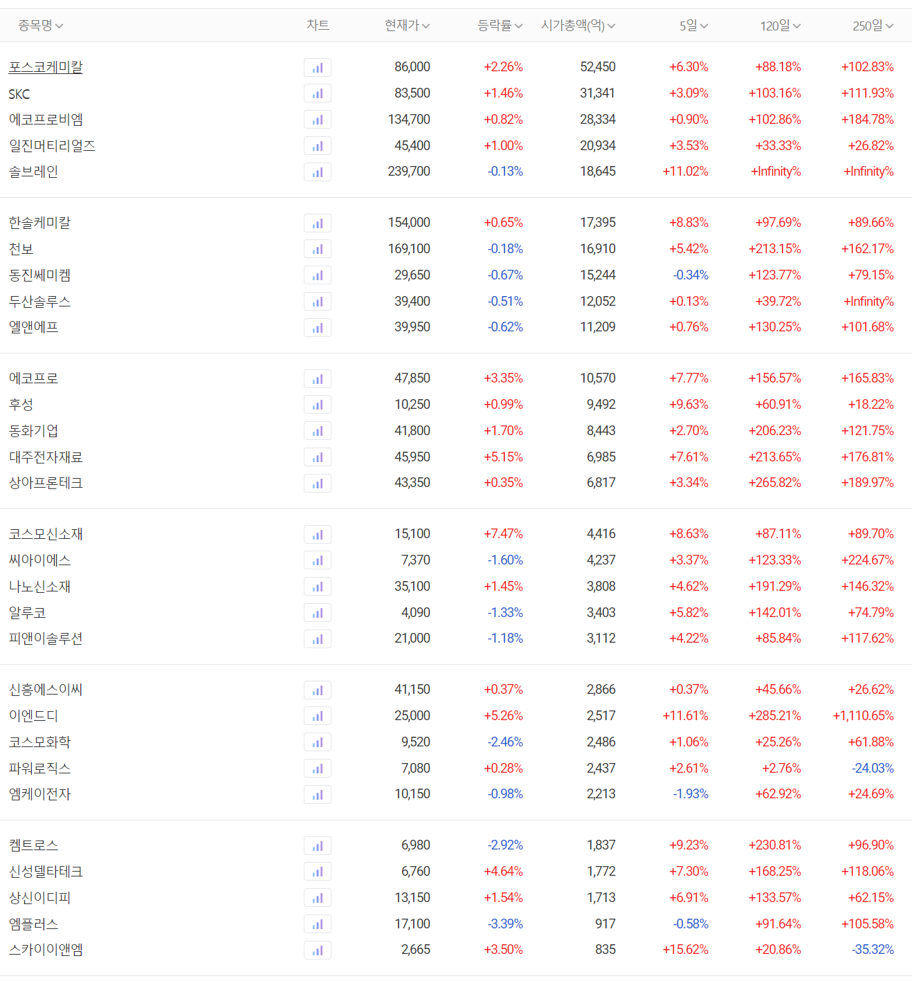 전기차 배터리(2차전지) 소재 관련주 대장주 주간 시황