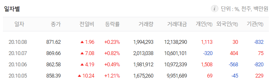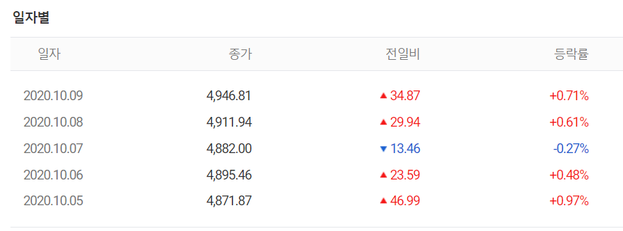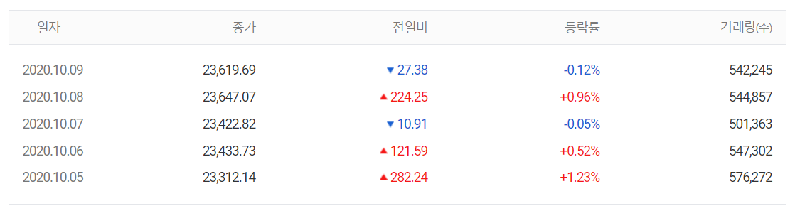 | 마감 시황(2020.10.08) 코스피, 코스닥, 해외 증시 (0) | 2020.10.08 |