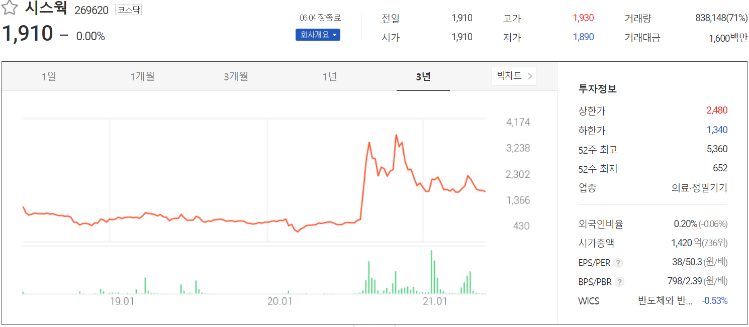 반도체 및 디스플레이, 바이오 등에 적용되는 국내 클린룸 제어 시스템 시장점유율 1위 업체로 신규 사업인 코로나19용 자가진단 키트의 생산 및 공급에 진출한 (주)시스웍의 2021년 1분기 실적 분석 및 최근 사업 현황을 통한 주가 전망을 공유합니다. 당사의 자세한 사업 내역과 이전 실적은 아래 링크를 참조하시기 바랍니다.