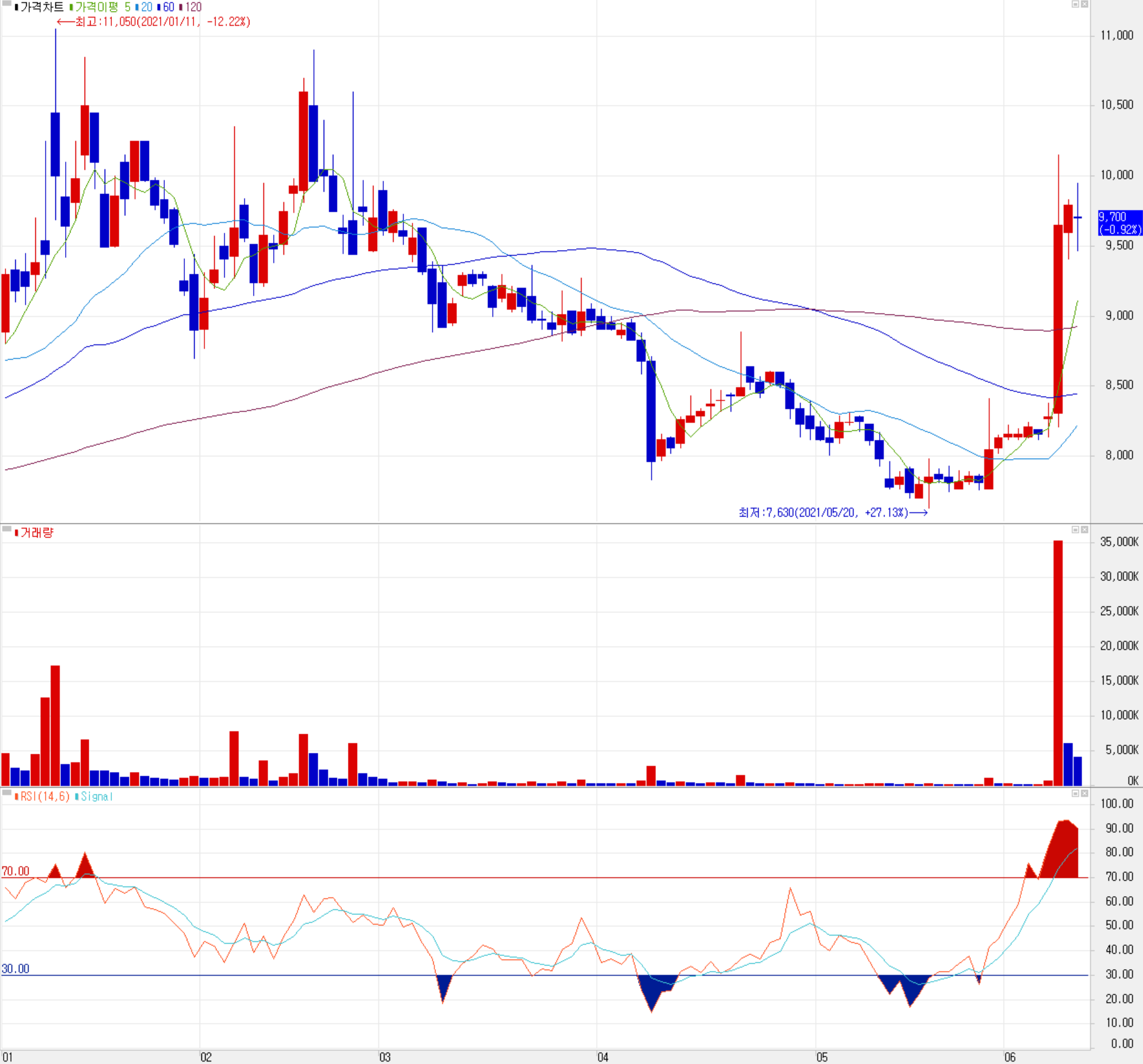 파워로직스 주가 추이(일봉: 2021.01 ~ 2021.06)