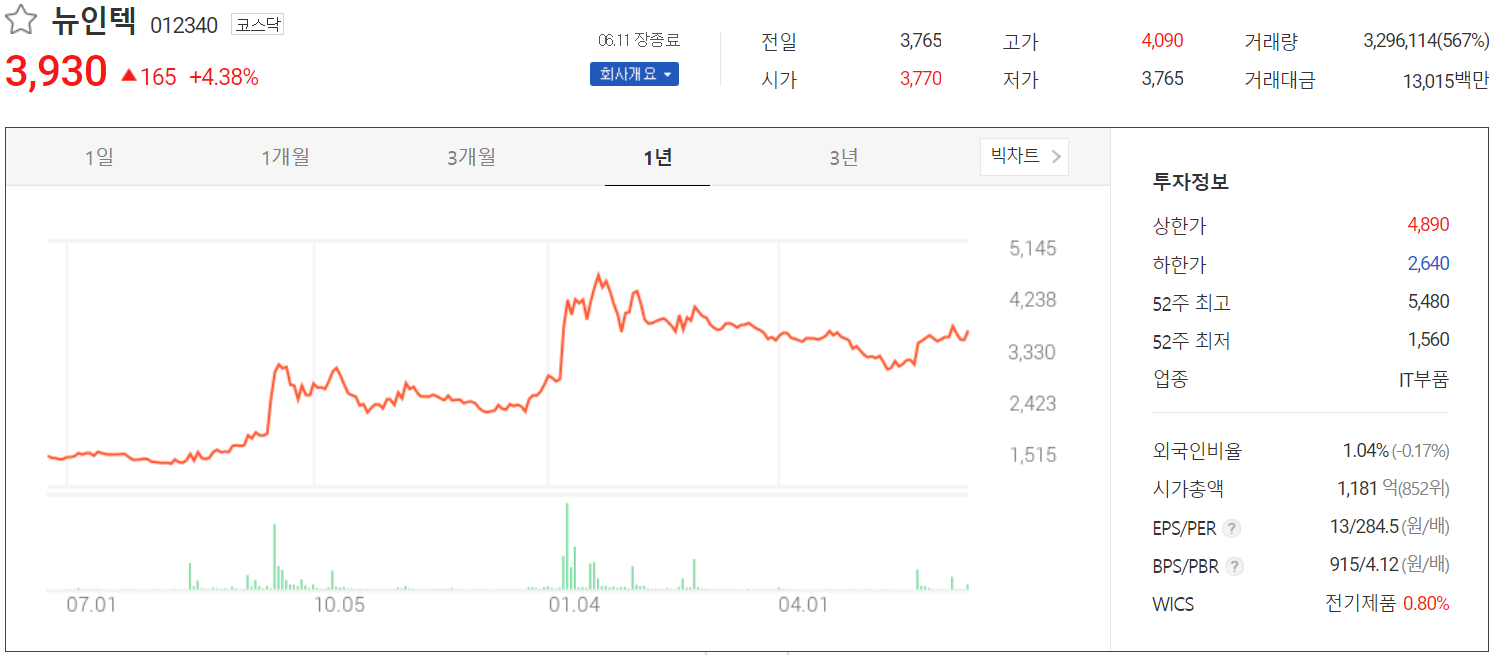 기업 분석 및 주가 전망 - 뉴인텍 (012340)