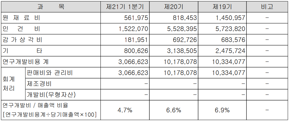 당사는 지난 1분기 연구 개발에 전체 매출액의 4.7%인 31억 원 규모의 비용을 투입하면서 주력 장비인 칠러와 스크러버의 성능 향상 및 신규 공정에 대응하기 위한 노력을 하고 있습니다.