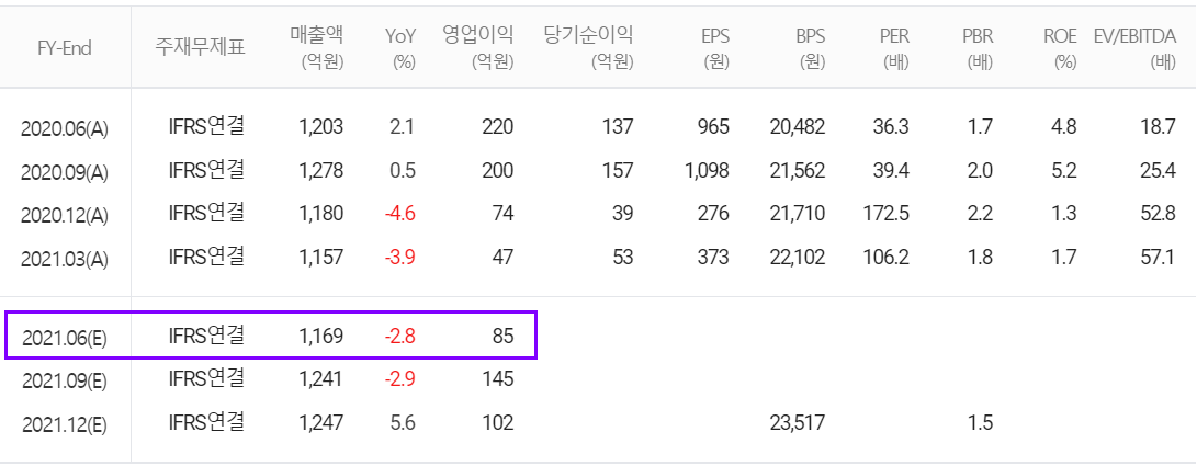 추정 실적 컨센서스