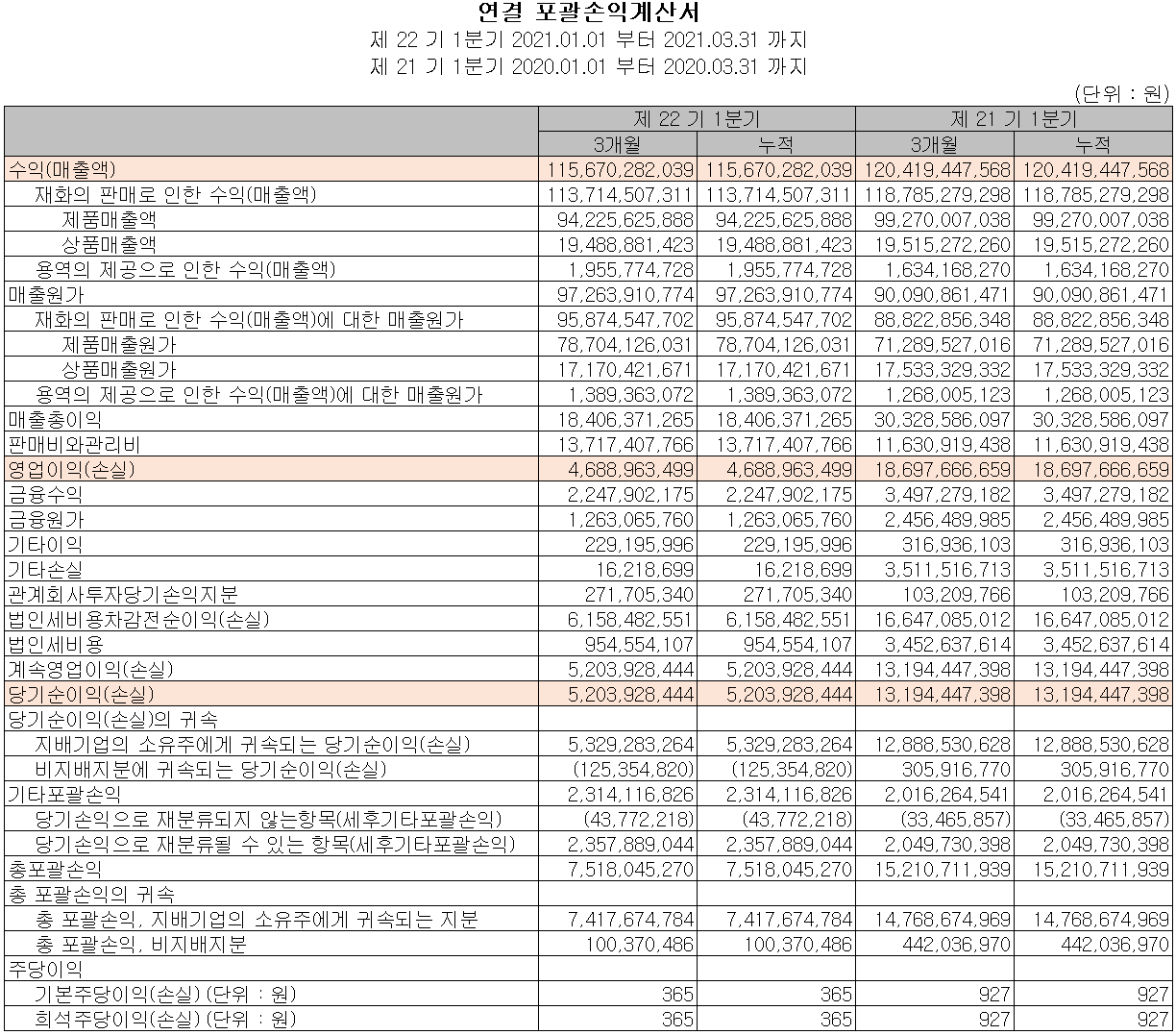 손익계산서 - 실적