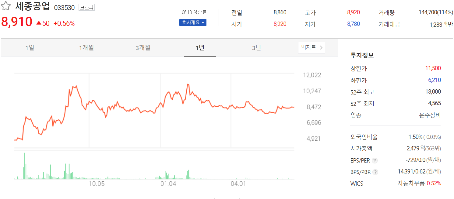 기업 분석 및 주가 전망 - 세종공업 (033530)