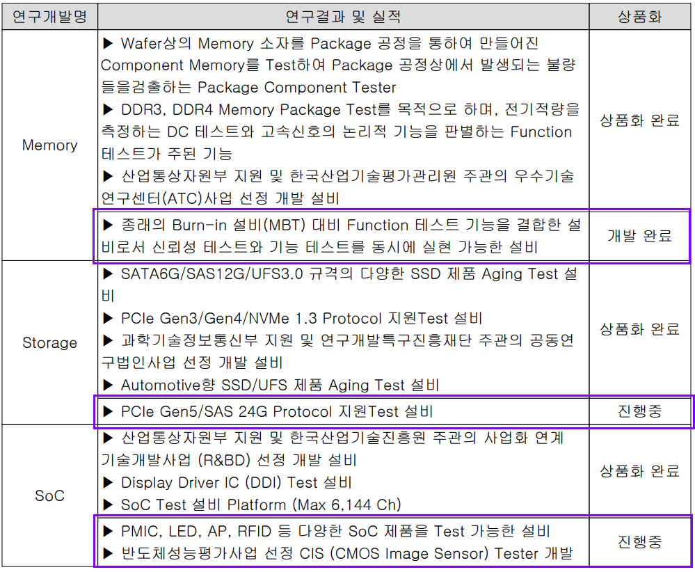 당사는 지난 1분기에도 매출액의 14.28%에 해당되는 22억 원 규모의 비용을 연구개발에 투자하면서 메모리, 스토리지 및 SoC 분야의 신제품 및 테스트 설비 개발을 지속하고 있습니다.