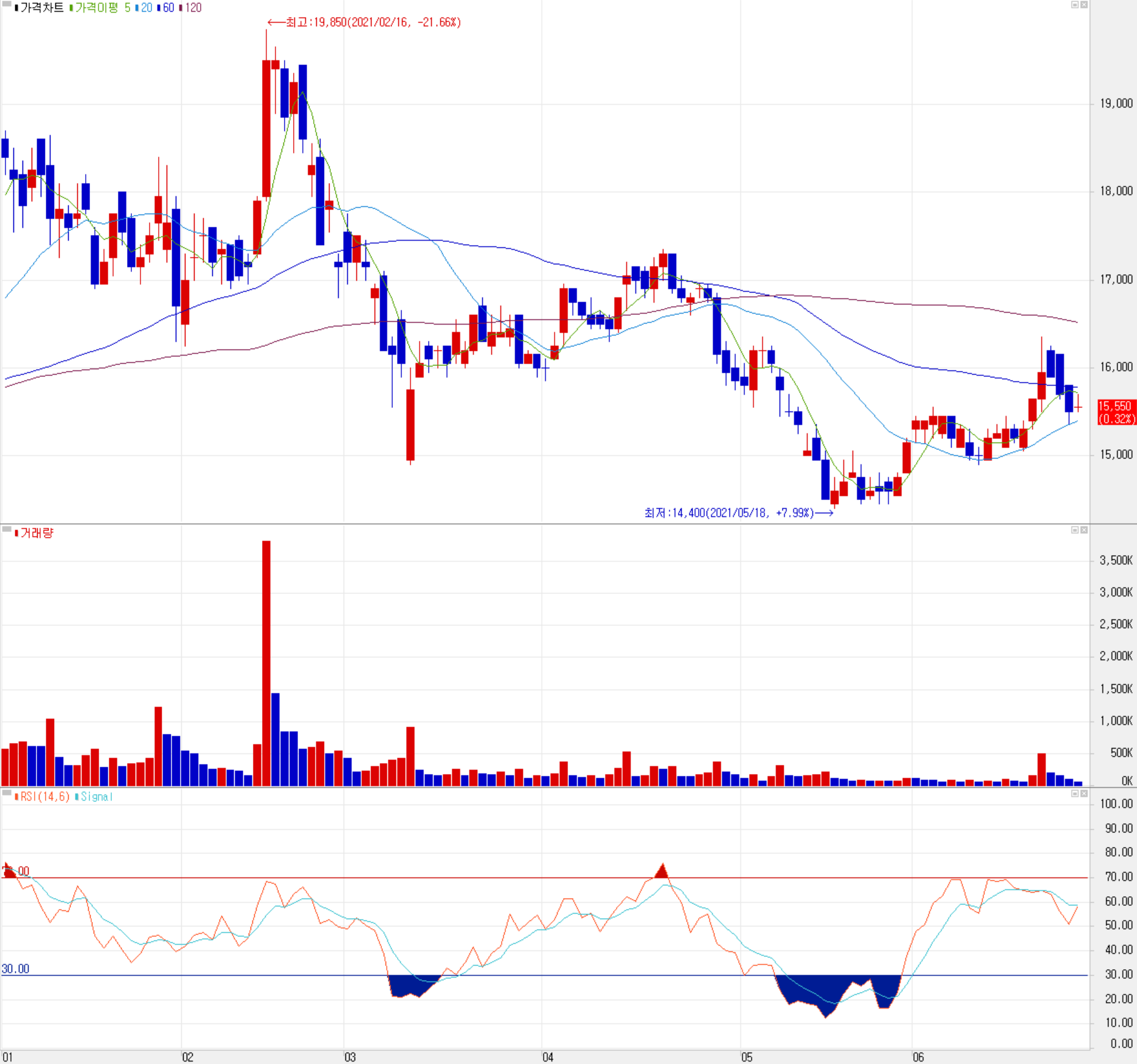6월 25일 장 종료 기준 당사의 주가는 전 거래일보다 0.32% 오른 15,550원에 거래를 마쳤습니다. 외국인 비중은 5.17%이며 시가 총액 2,809억 원으로 코스닥 시총 기준 357위 종목입니다.