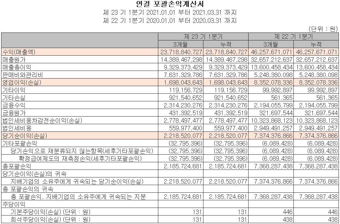 (주)아이씨디 2021년 1분기 실적 - 손익계산서