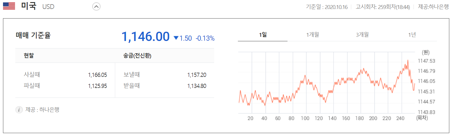 원달러 환율은 18:44 현재 1.50원 내린 1146을 기록하고 있습니다.