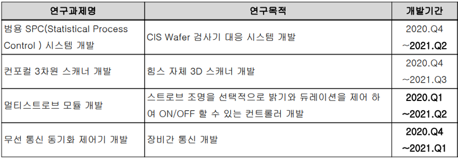 당사는 지난 1분기 매출액의 9.3%에 해당되는 9.8억 원 규모의 비용을 연구개발에 투입하면서 반도체 및 디스플레이 제조 공정 관련 연구를 지속하고 있습니다.